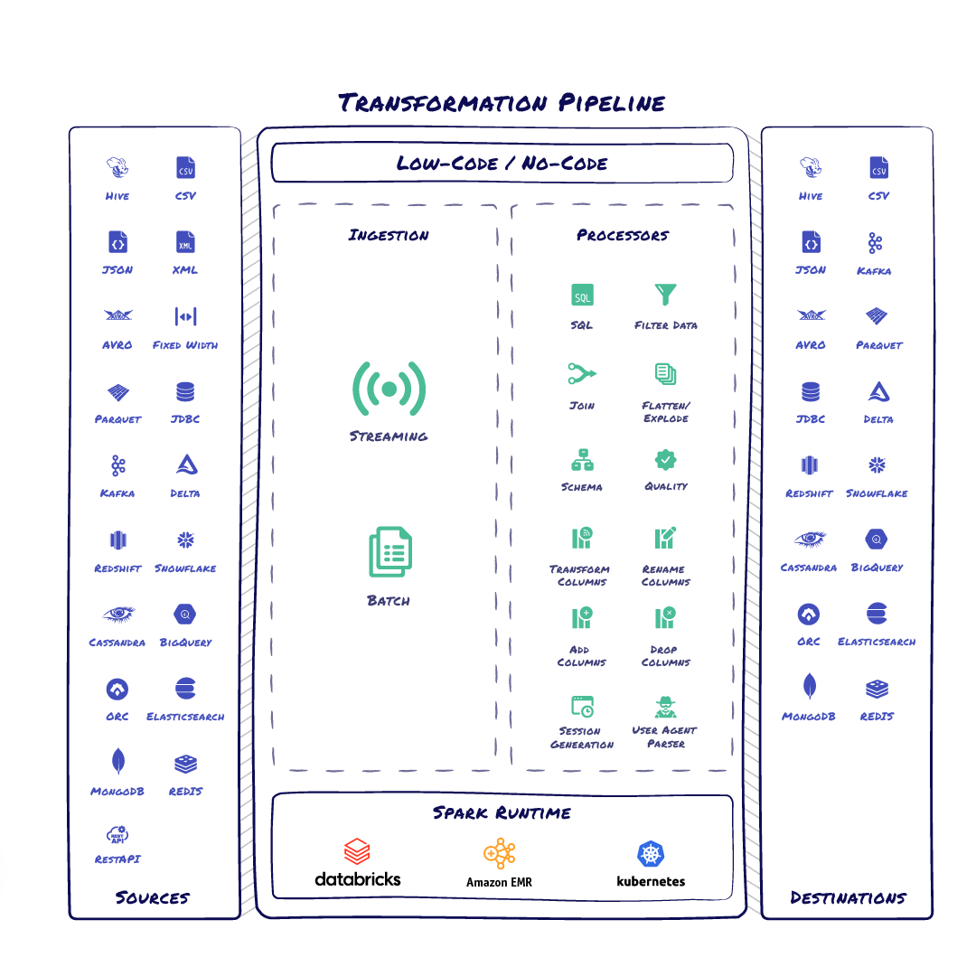 DataMorph does the Extraction, Loading, Transformation (ELT) and orchestration in a single platform, greatly simplifying your data product creation process. DataMorph provides you a visual canvas of operators and SQL snippets to create complex data pipelines and workflows. DataMorph translates these pipelines to run in Spark, the most efficient transformation engine, to get the most out of your cloud data platform and without the data team needing to learn advanced dependencies and scaling techniques.